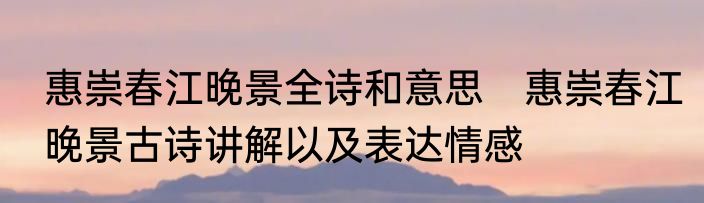 惠崇春江晚景全诗和意思 惠崇春江晚景古诗讲解以及表达情感