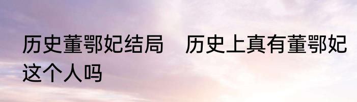 历史董鄂妃结局 历史上真有董鄂妃这个人吗
