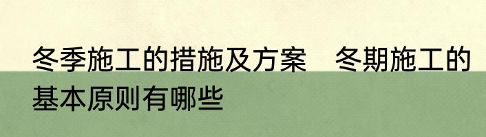 冬季施工的措施及方案 冬期施工的基本原则有哪些