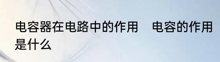 电容器在电路中的作用 电容的作用是什么