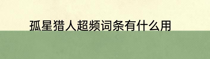 大家好,小香来为大家讲解下孤星猎人超频词条有什么用,现在让我们一起来看看吧!