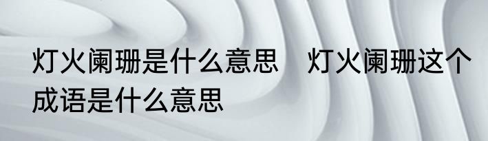 灯火阑珊是什么意思 灯火阑珊这个成语是什么意思