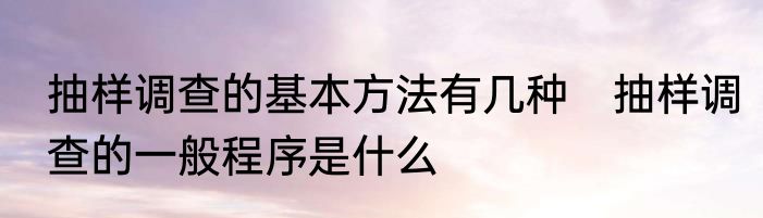 抽样调查的基本方法有几种 抽样调查的一般程序是什么