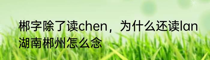 郴字除了读chen,为什么还读lan 湖南郴州怎么念