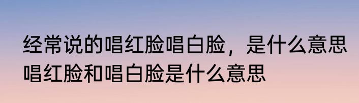 经常说的唱红脸唱白脸,是什么意思 唱红脸和唱白脸是什么意思