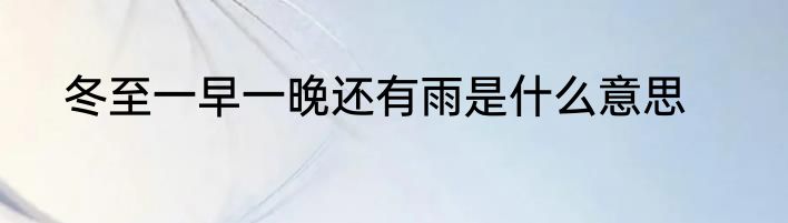 冬至一早一晚还有雨是什么意思?