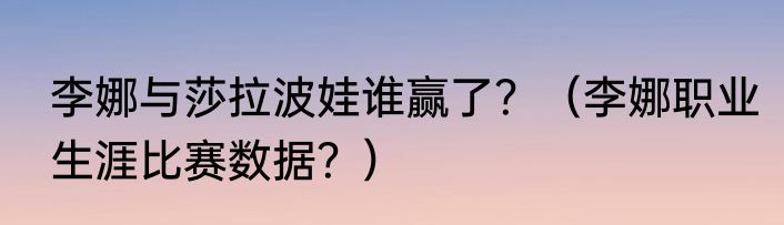 提及李娜与莎拉波娃谁赢了?(李娜职业生涯比赛数据?)的相关内容,许多人不太了解,来看看小立的介绍吧!