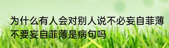 为什么有人会对别人说不必妄自菲薄 不要妄自菲薄是病句吗