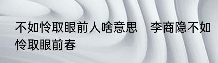 不如怜取眼前人啥意思 李商隐不如怜取眼前春