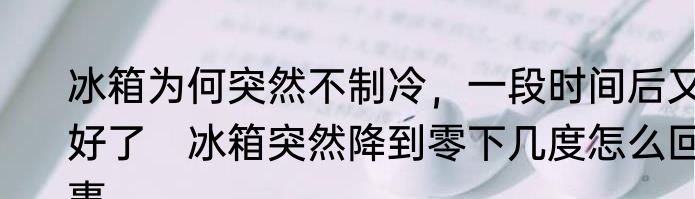 冰箱为何突然不制冷,一段时间后又好了 冰箱突然降到零下几度怎么回事