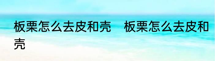 板栗怎么去皮和壳 板栗怎么去皮和壳