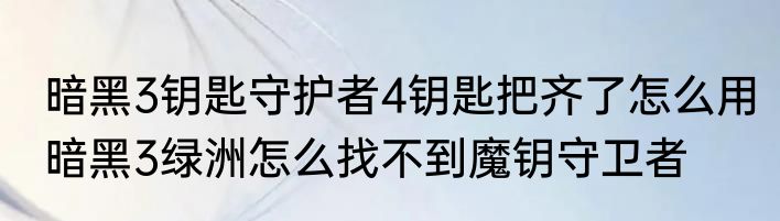 暗黑3钥匙守护者4钥匙把齐了怎么用 暗黑3绿洲怎么找不到魔钥守卫者