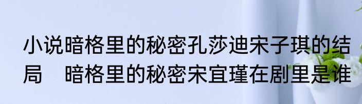 小说暗格里的秘密孔莎迪宋子琪的结局 暗格里的秘密宋宜瑾在剧里是谁