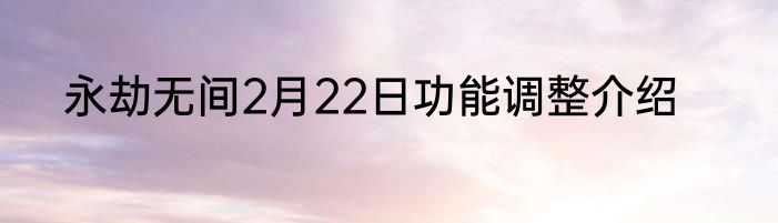 简介大家好,小婷来为大家讲解下永劫无间2月22日功能调整介绍,现在让我们一起来看看吧! 永劫无间2月22日功能调整介绍在哪看?永劫无间在近期也是