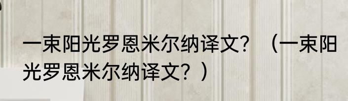 一束阳光罗恩米尔纳译文?(一束阳光罗恩米尔纳译文?)