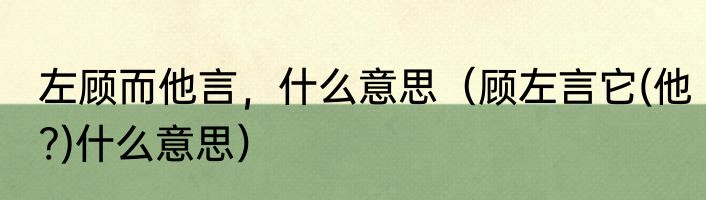 左顾而他言,什么意思(顾左言它(他?)什么意思)