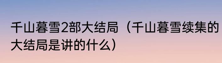 千山暮雪2部大结局(千山暮雪续集的大结局是讲的什么)