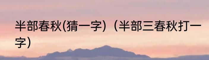 简介半部春秋(猜一字)?谜底是秦,(香,炅,炚也行)半部春秋解释为春秋两个字各取一半春取上半秋取火合成谜底秦同理香,炅,炚也是谜底由于秦是春秋