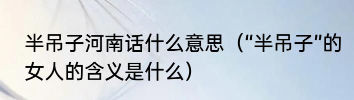半吊子河南话什么意思(“半吊子”的女人的含义是什么)