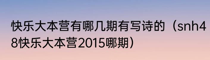 快乐大本营有哪几期有写诗的(snh48快乐大本营2015哪期)