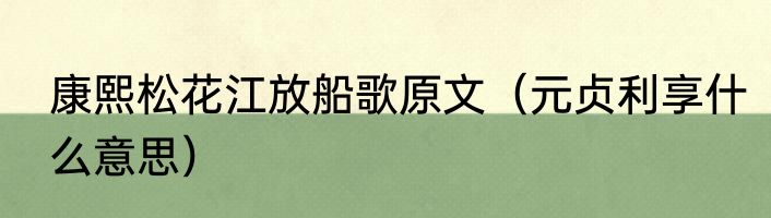 康熙松花江放船歌原文(元贞利享什么意思)