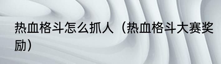 热血格斗怎么抓人(热血格斗大赛奖励)