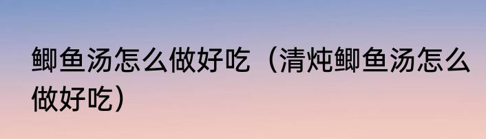 鲫鱼汤怎么做好吃(清炖鲫鱼汤怎么做好吃)
