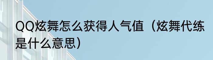 QQ炫舞怎么获得人气值(炫舞代练是什么意思)