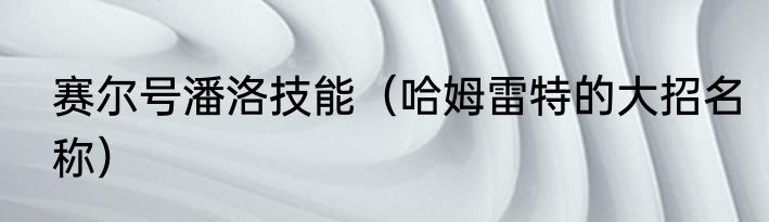 赛尔号潘洛技能(哈姆雷特的大招名称)