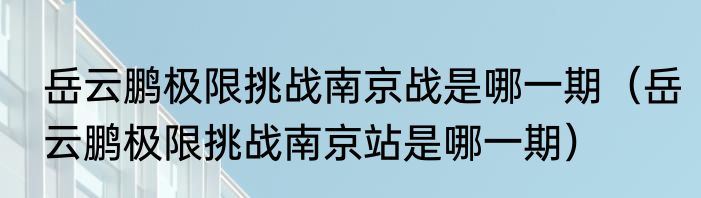 岳云鹏极限挑战南京战是哪一期(岳云鹏极限挑战南京站是哪一期)