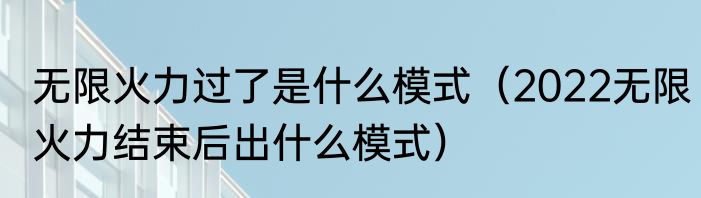 无限火力过了是什么模式(2022无限火力结束后出什么模式)