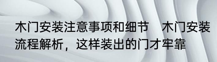 木门安装注意事项和细节 木门安装流程解析,这样装出的门才牢靠