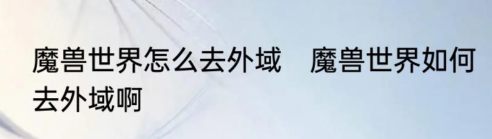 魔兽世界怎么去外域 魔兽世界如何去外域啊
