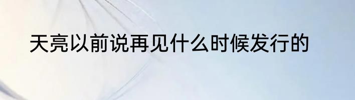 天亮以前说再见什么时候发行的