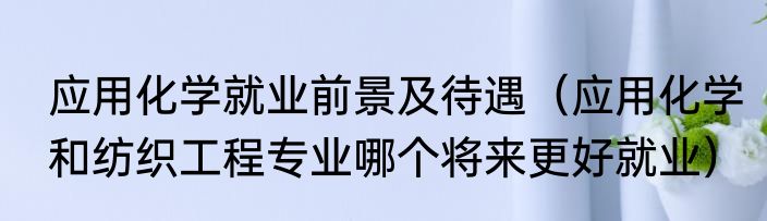 应用化学就业前景及待遇(应用化学和纺织工程专业哪个将来更好就业)