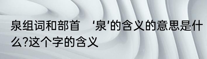 泉组词和部首 ‘泉’的含义的意思是什么?这个字的含义
