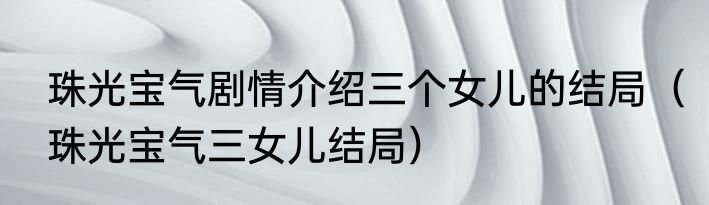 珠光宝气剧情介绍三个女儿的结局(珠光宝气三女儿结局)