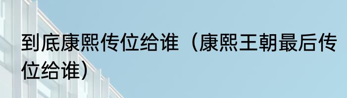 到底康熙传位给谁(康熙王朝最后传位给谁)