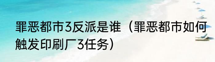 罪恶都市3反派是谁(罪恶都市如何触发印刷厂3任务)