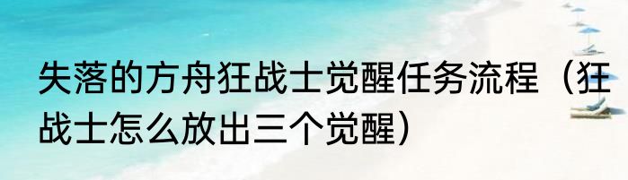 失落的方舟狂战士觉醒任务流程(狂战士怎么放出三个觉醒)