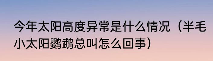 今年太阳高度异常是什么情况(半毛小太阳鹦鹉总叫怎么回事)
