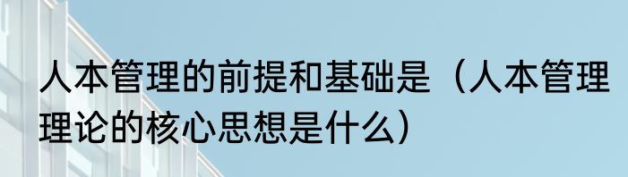 人本管理的前提和基础是(人本管理理论的核心思想是什么)