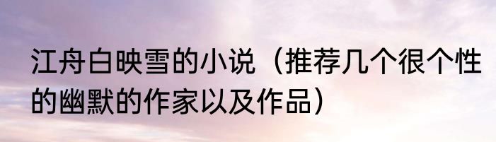 江舟白映雪的小说(推荐几个很个性的幽默的作家以及作品)