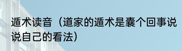 遁术读音(道家的遁术是囊个回事说说自己的看法)