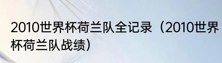 简介2010世界杯荷兰队全记录?2010年荷兰队在世界杯的比赛中一路杀进了决赛,但遗憾的负于西班牙,屈居亚军。2010世界杯荷兰队战绩?荷兰国家队