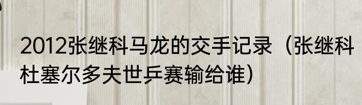 简介2012张继科马龙的交手记录?2012年交手两次,张继科在斯洛文尼亚公开赛男单决赛中4-3战胜马龙,结束了马龙长达220多天国内外一场不败56连胜