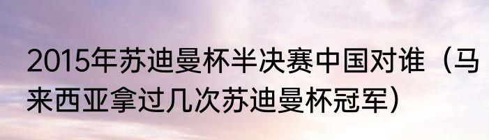 2015年苏迪曼杯半决赛中国对谁(马来西亚拿过几次苏迪曼杯冠军)