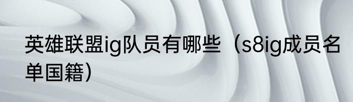 英雄联盟ig队员有哪些(s8ig成员名单国籍)