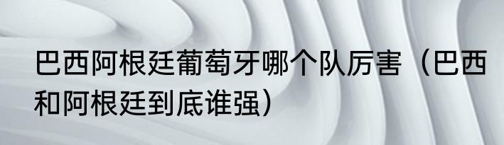 巴西阿根廷葡萄牙哪个队厉害?