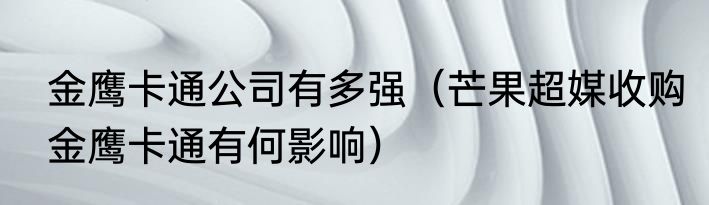 金鹰卡通公司有多强(芒果超媒收购金鹰卡通有何影响)